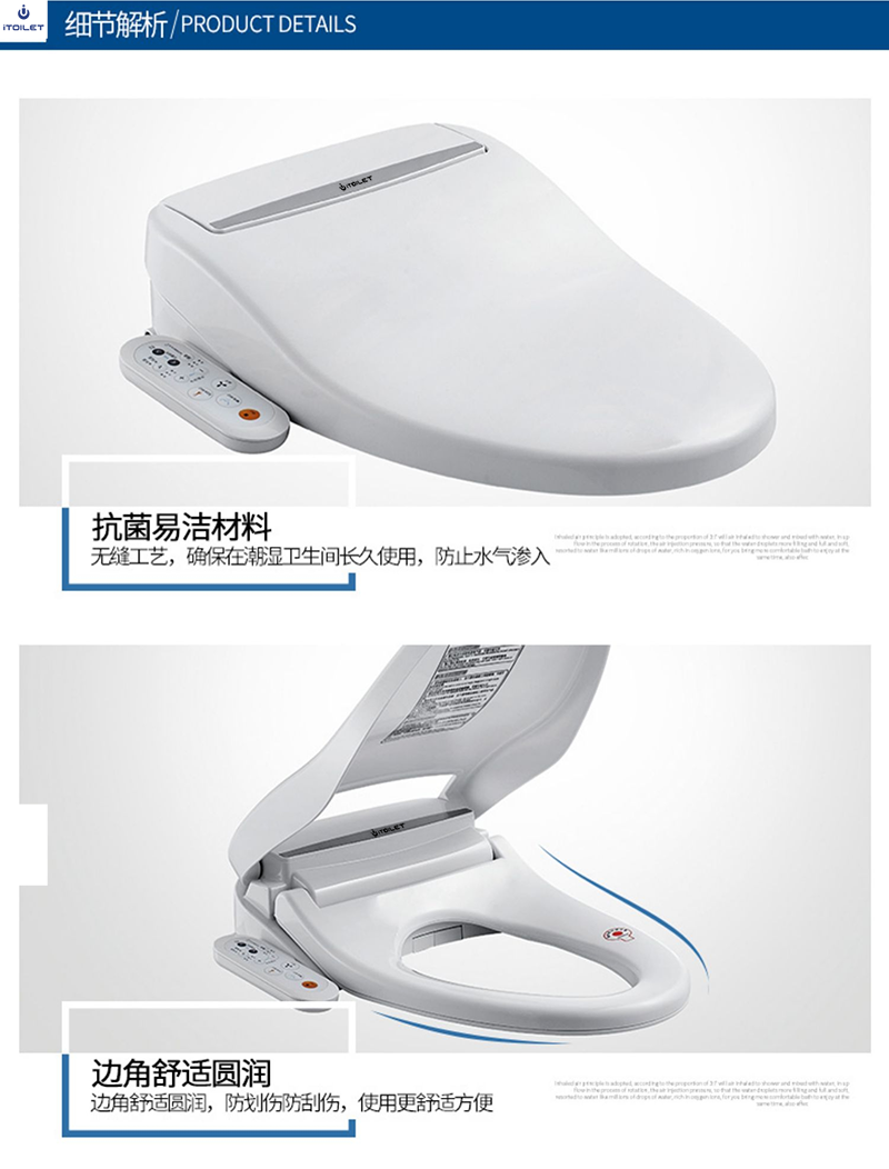 16、抗菌座圈和噴頭:座圈和噴頭均加入銀離子抗菌成分,不易滋生細菌;